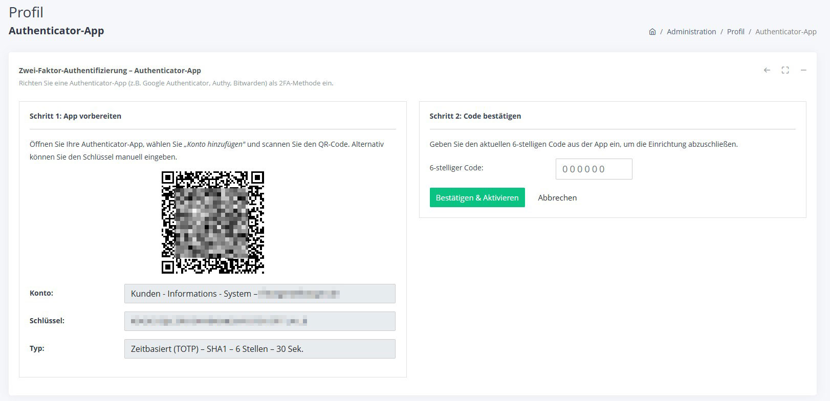 2FA - Aktivieren / ändern
