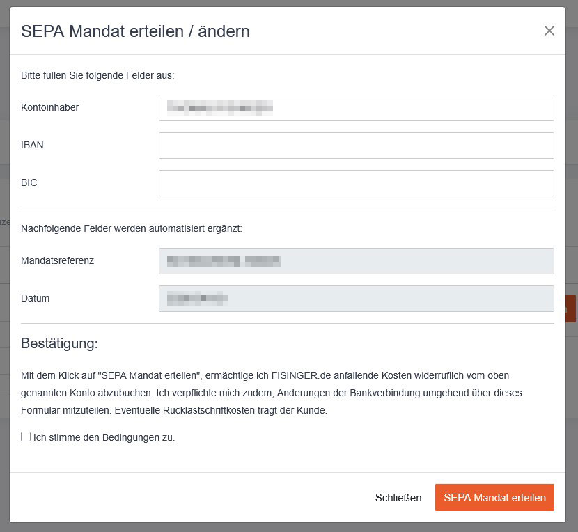 - Klicke auf „SEPA Mandat erteilen".