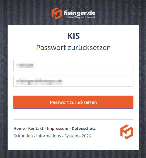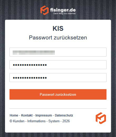- Es öffnet sich die Seite „Passwort zurücksetzen".