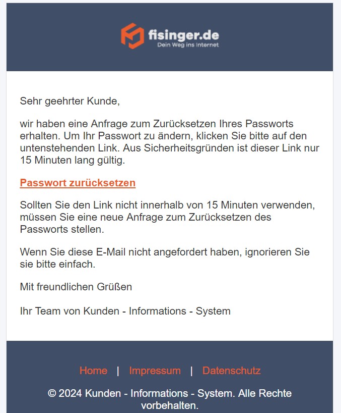 - Gültigkeitsdauer des Links: 1 Stunde ab Versandzeitpunkt.